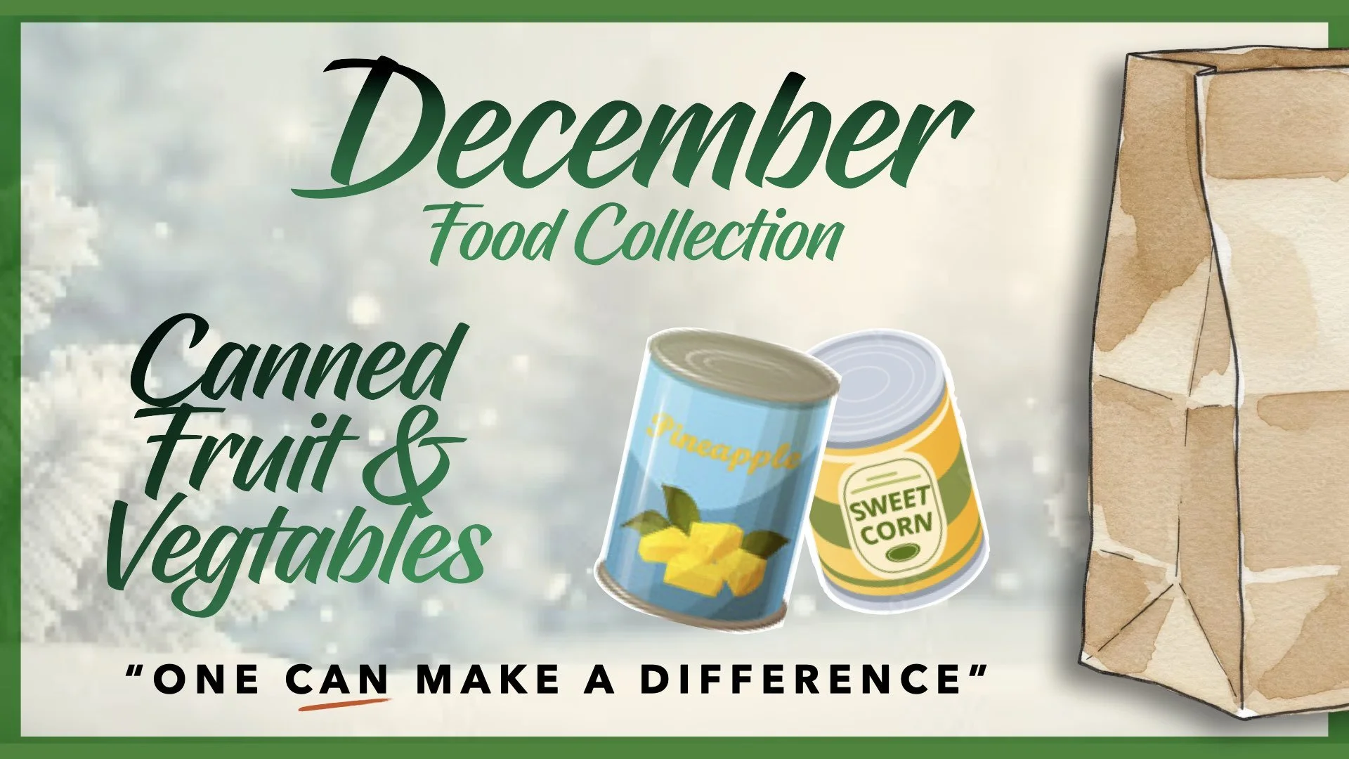 Bring Canned Goods and Place in Metal Baskets by Missions Wall